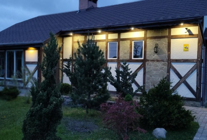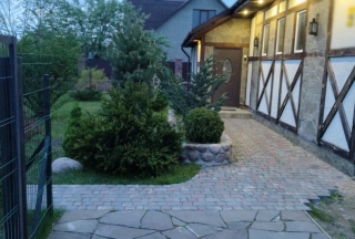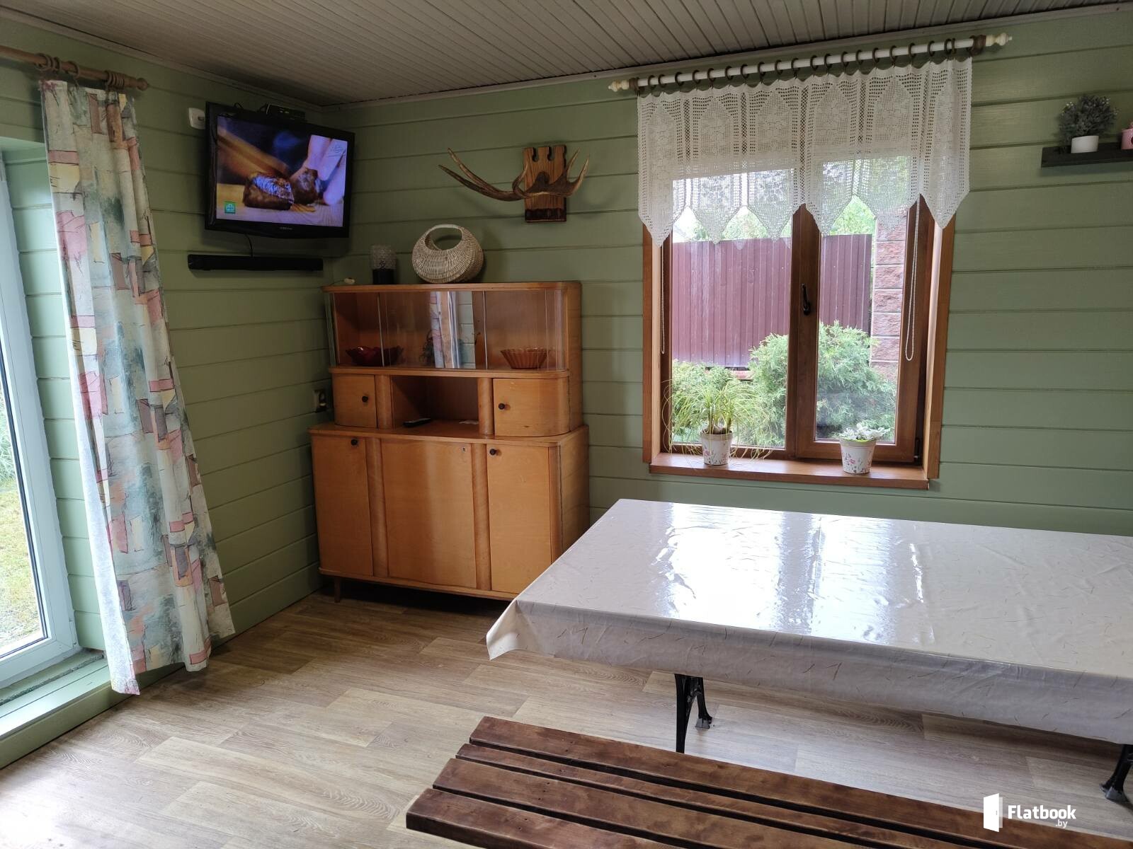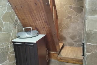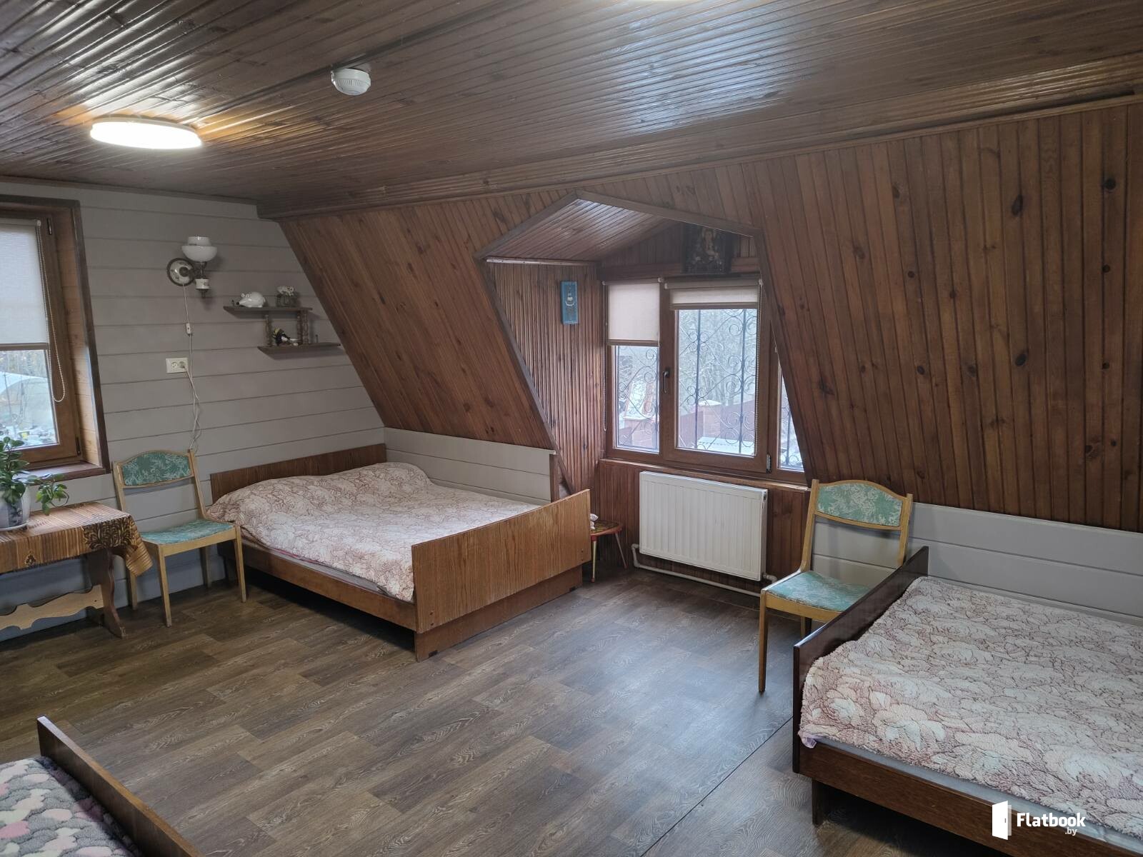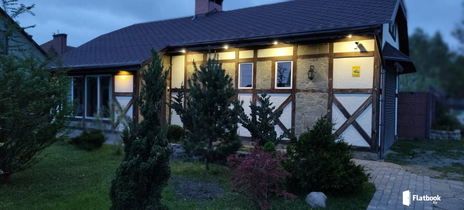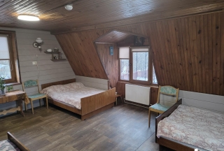 2-х этажный дом с сауной. На первом этаже прихожая, санузел, сауна с душем, комната отдыха, мини кухня с СВЧ печкой, эл.чайником, холодильником, комплект посуды на 8 человек, телевизор. На втором этаже спальные места. Всего 8 спальных мест 2+2+2+2. Интерьер в виде охотничьего домика. Участок огорожен высоким забором, парковочные места, видеонаблюдение, качели, спортивный и детский уголок, много зелёных насаждений и различных архитектурных строений. Рядом с домом большая беседка на 12 человек с крытым мангалом.